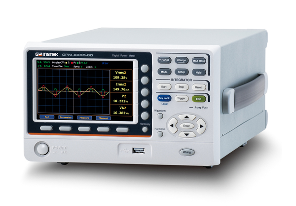 GPM-8320-60/GPM-8330-60 also feature waveform display capabilities (voltage/current/power), the integration measurement function, harmonics measurement and analysis of multiple orders (50 Hz / 60 Hz measurement complies with IEC61000-4-7 requirements), external sensor input terminals, and a variety of communications interfaces.